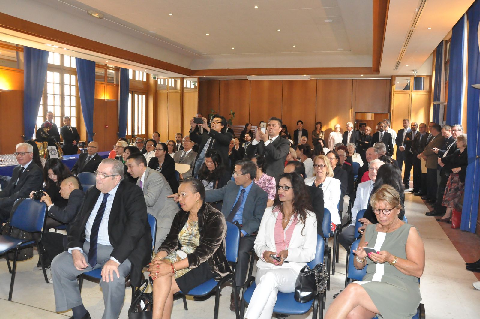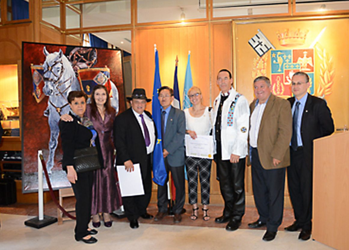 C’est notamment à ce titre et pour toute la richesse de votre histoire personnelle que la Ligue Universelle du Bien Public est heureuse de vous accueillir dans ses rangs et est honorée de vous remettre aujourd’hui cette médaille d’Argent avec palme.