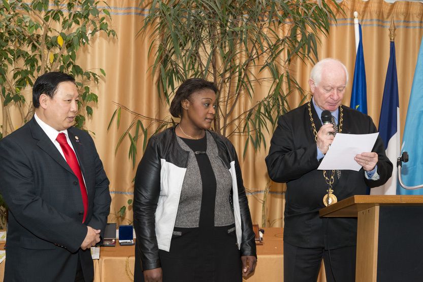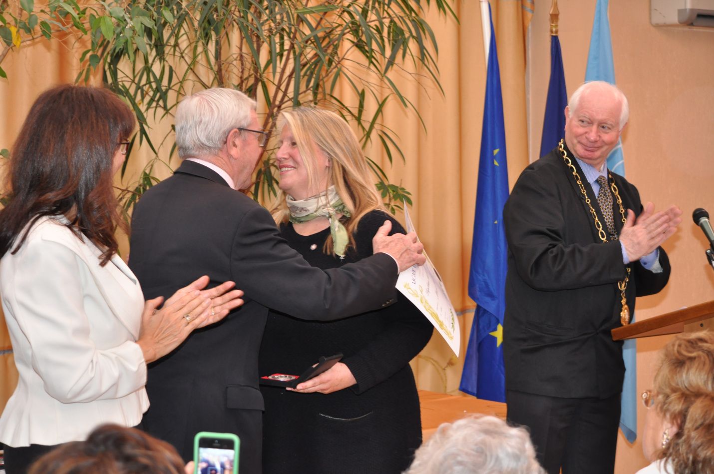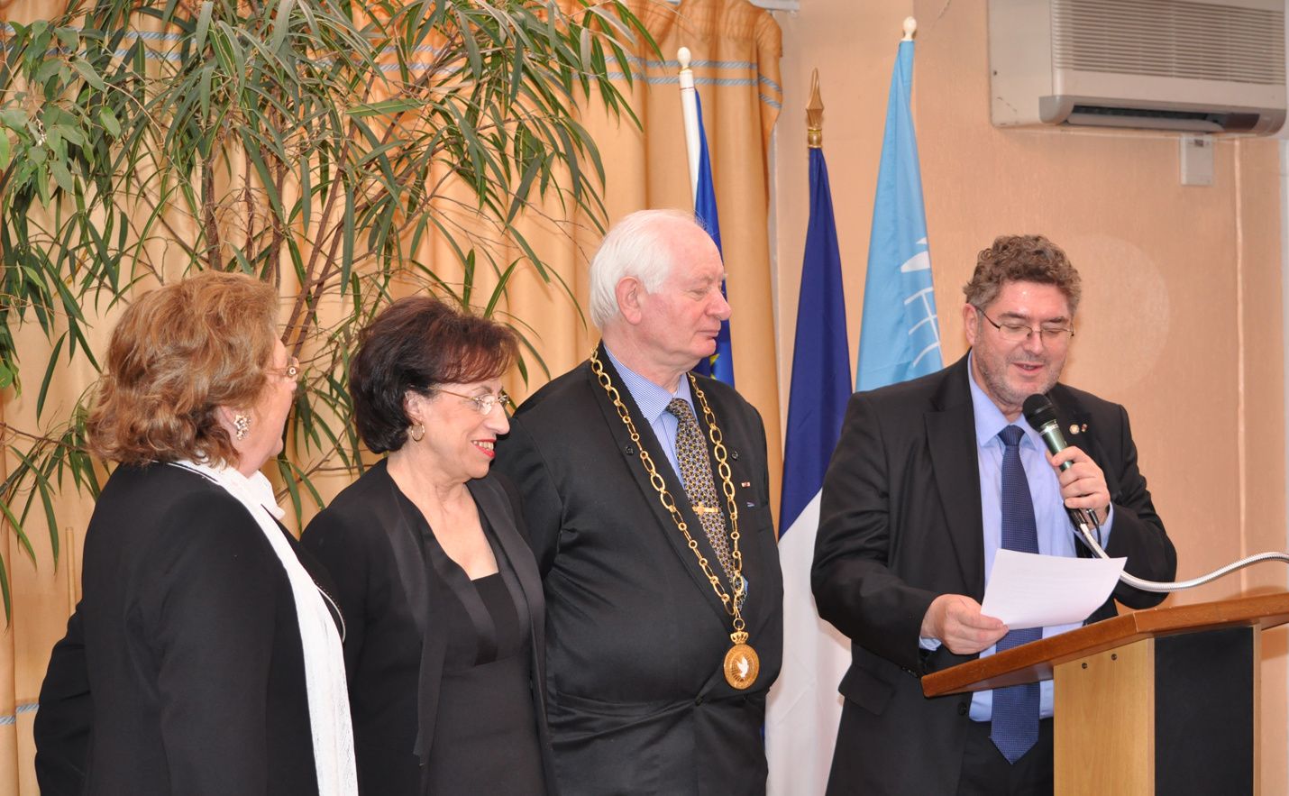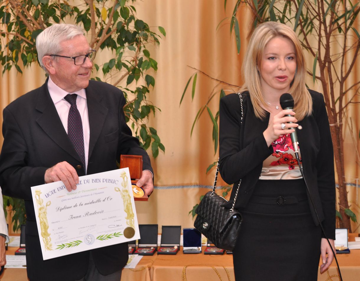 C’est pour toute la richesse de votre histoire personnelle que la Ligue Universelle du Bien Public est heureuse de vous accueillir dans ses rangs et honorée de vous remettre aujourd’hui sa médaille d’Argent avec Palme et Couronne.