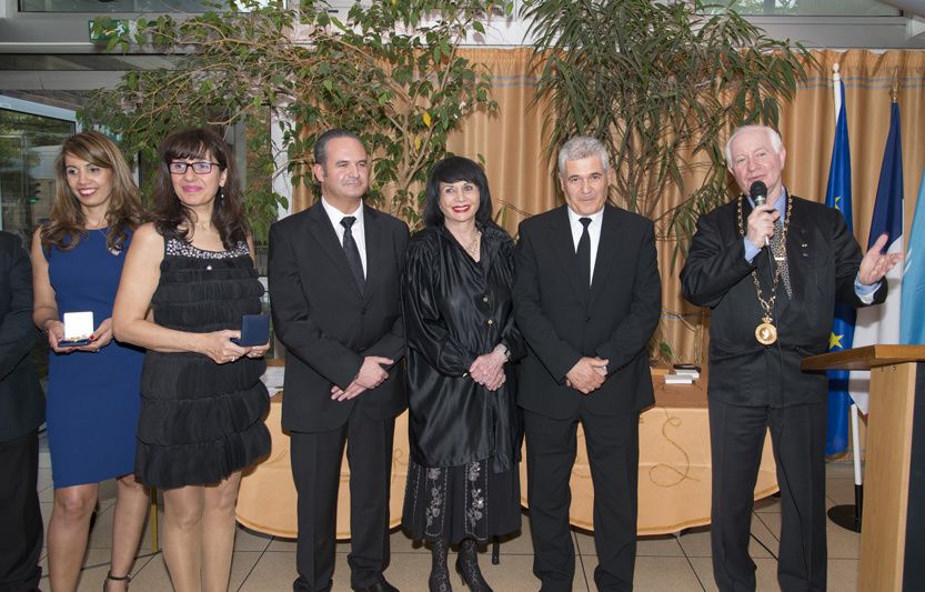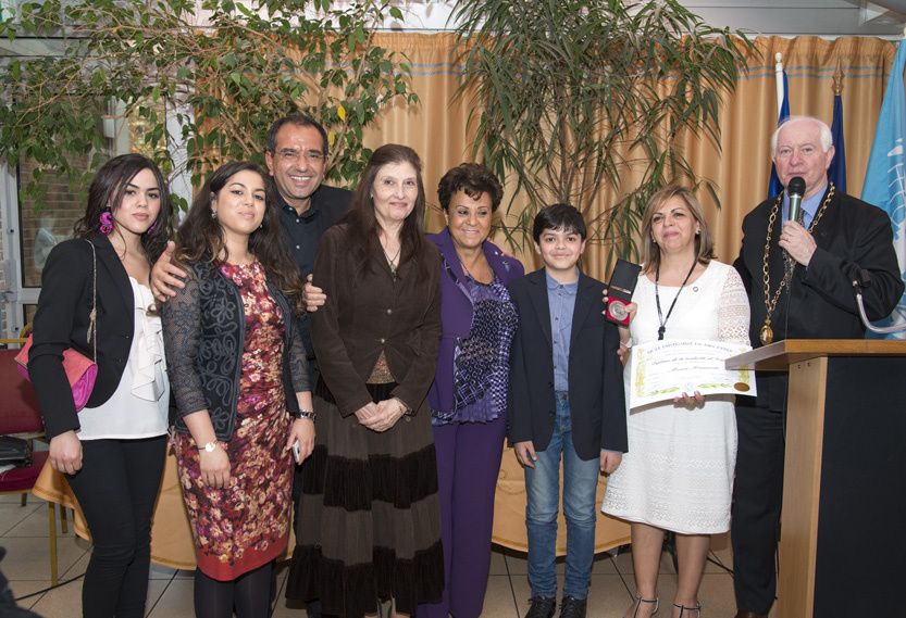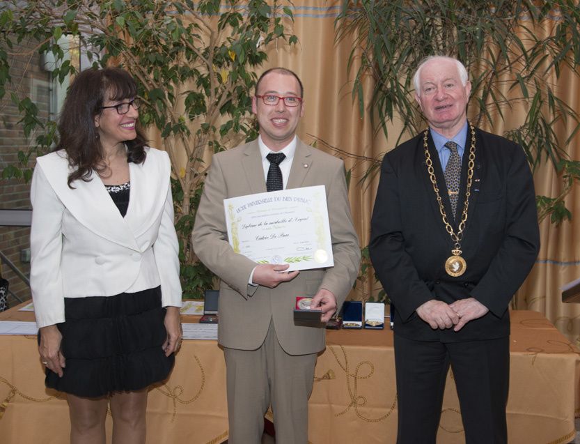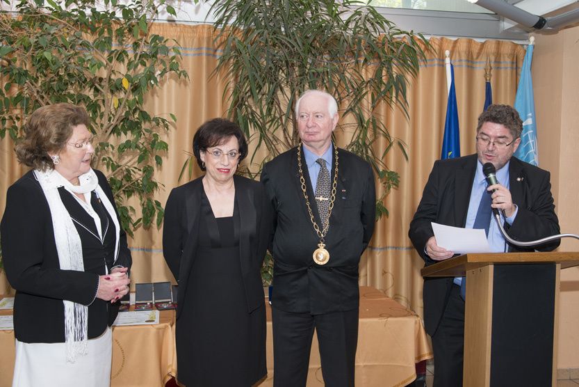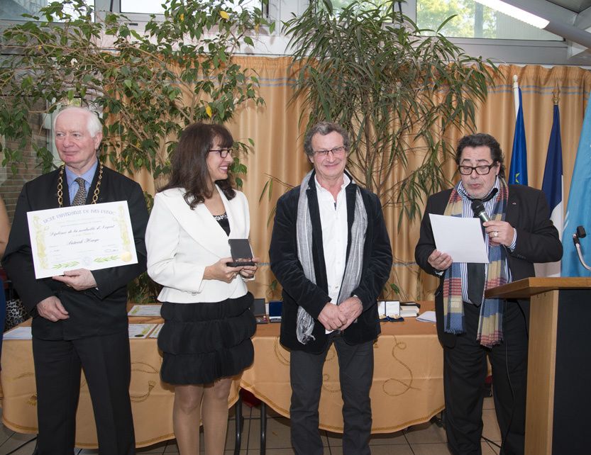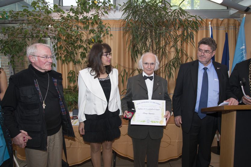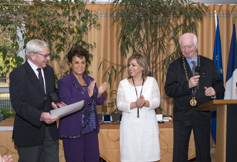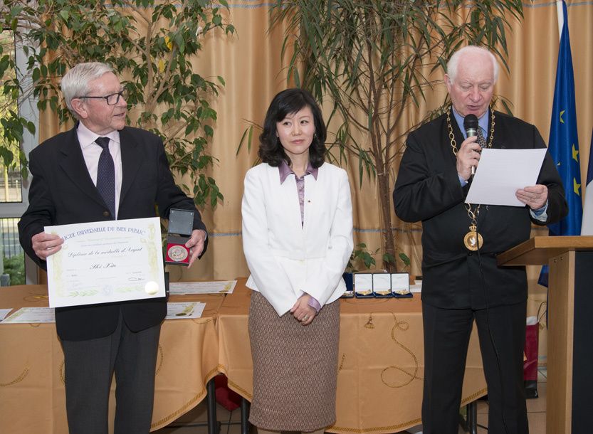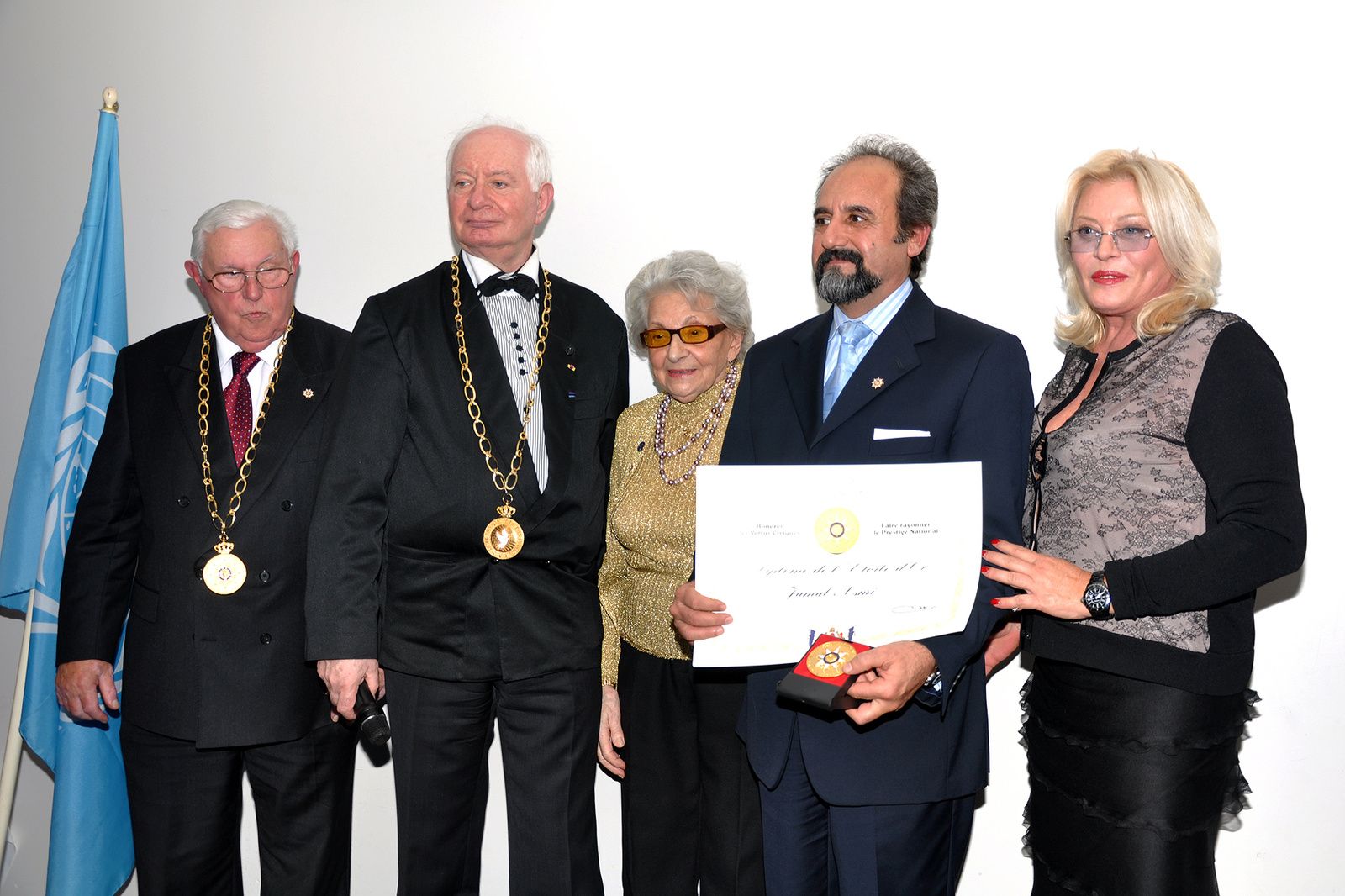 C’est à ce titre et pour toute la richesse de votre histoire personnelle que la Ligue Universelle du Bien Public est honorée de vous accueillir dans ses rangs et de vous remettre sa médaille d’argent avec Palmes et Couronne.
