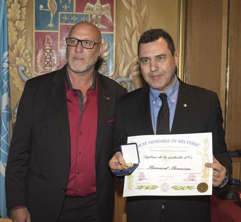 Pour votre action solidaire et prise en compte du bien public, la Ligue Universelle du Bien Public est heureuse de vous remettre sa médaille d’Argent avec Palme,
