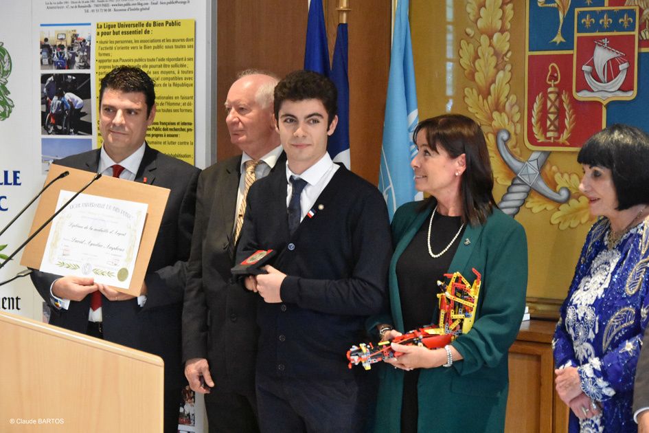 Pour votre implication dans le Bien Public, la Ligue Universelle du Bien Public est heureuse de vous compter parmi les siens en vous remettant sa médaille d’Argent et nul doute que la médaille d’or vous sera rapidement proposée au vu de la continuité de vos actions aux service du Bien Public.