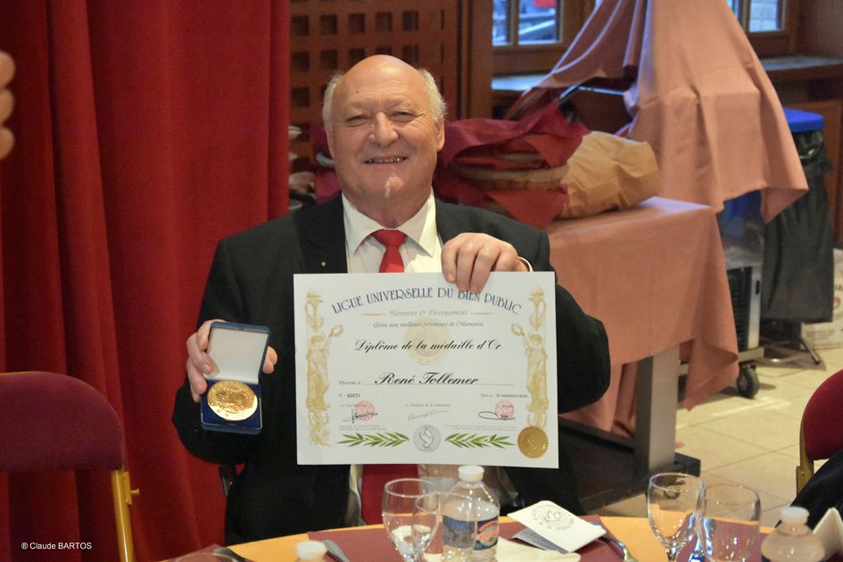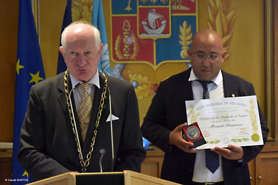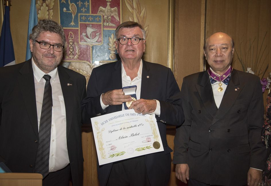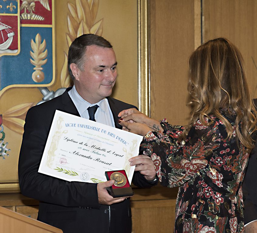 Pour son implication dans le Bien Public, la Ligue Universelle du Bien Public est heureuse de lui remettre sa médaille d’Argent avec Palme.